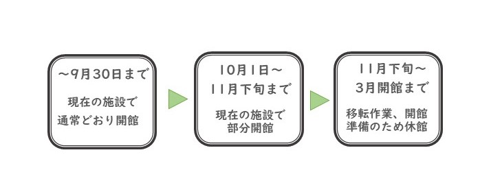 移転に向け10月からは、現在の施設で開館をしながらオープンへ向けた準備作業をおこないます。