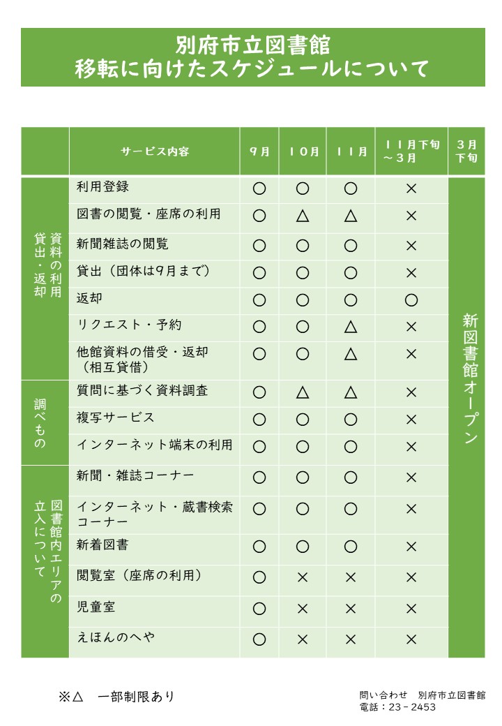 別府市立図書館は令和8年3月に移転オープンの予定です。